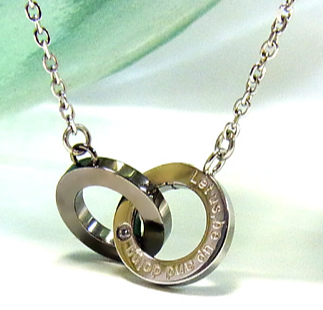 重なり合う2つのリングが、「絆」「永遠」「想いのつながり」を象徴するステンレスネックレス。